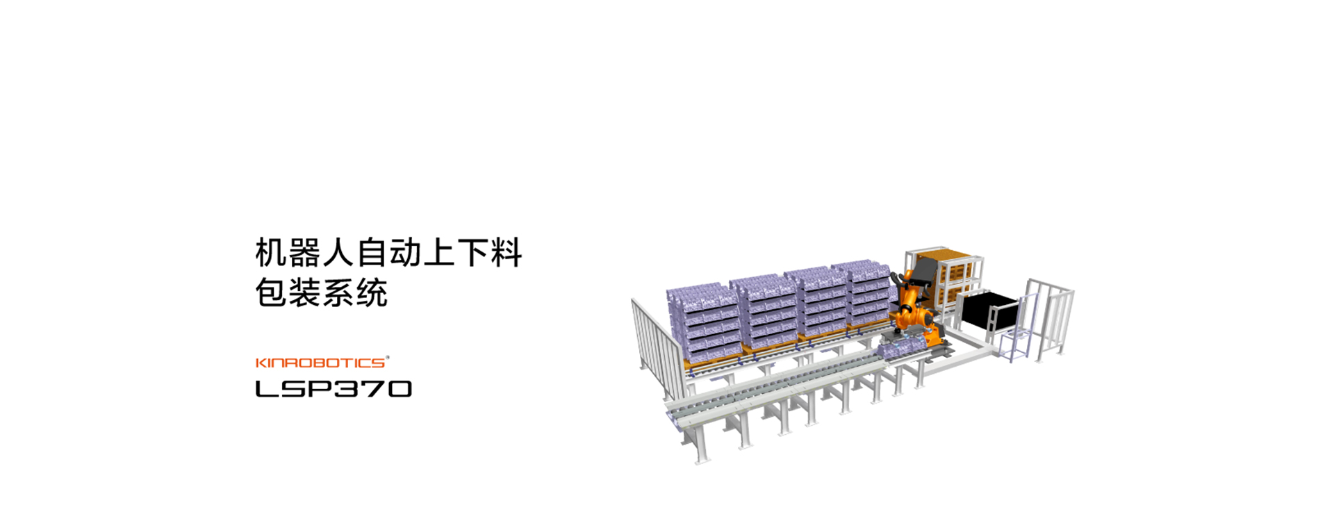 機器人自動上下料包裝系統是一套多功能的系統。旨在替代人工搬運、碼垛,生產上能迅速提高效率和產量,同時能減少人工搬運造成的差錯。系統主要由上料輸送機、搬運機器人、下料輸送機構成,托盤的放置使用自動上下料裝置,替代人工工作量并節約人力資本。同時,機器人上下料夾具采用組合形式,同時滿足工件和隔板的抓放。這使系統具備較高的靈活性。允許單次抓取最大重量150kg。